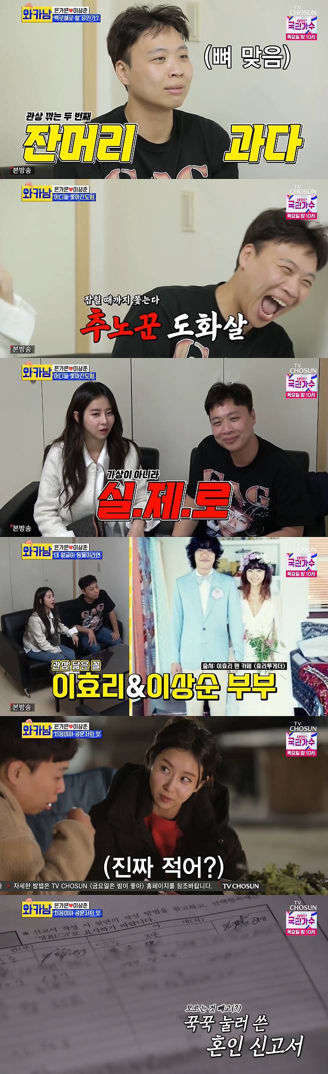 두 사람은 진지하게 혼인 신고서를 작성했고, 이어 사인까지 했다. 이상준은 "조금 뭉클하다"며 묘한 표정을 지었고, 은가은도 "기분이 이상하다"고 말했다.