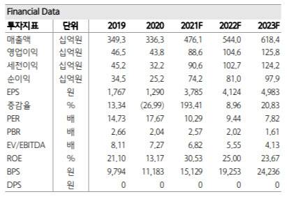 이에 하나금융투자가 전망하는 내년 이녹스첨단소재의 매출액, 영업이익은 5440억원, 1046억원으로 전년 대비 14%, 19% 증가한 수치이며 매출과 영업이익 증가세가 지속될 전망이다.