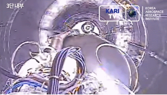 영상을 보면 누리호의 1단 분리 시점에 1단 엔진 정지, 1단 분리, 2단 엔진 점화가 차례로 진행됐다. 1단 분리 및 2단 엔진 점화 후 2단 엔진이 자세제어를 위해 노즐을 활용해 미세 조정을 하는 모습과 분리된 1단의 낙하 장면도 들어 있다.