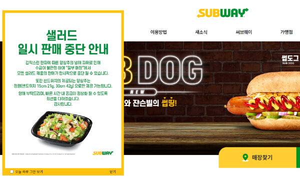 써브웨이는 "일부 매장에서 샐러드 제품 판매가 한시적으로 중단될 수 있고, 샌드위치에 들어가는 양상추도 정량으로만 제공된다"고 전했습니다.