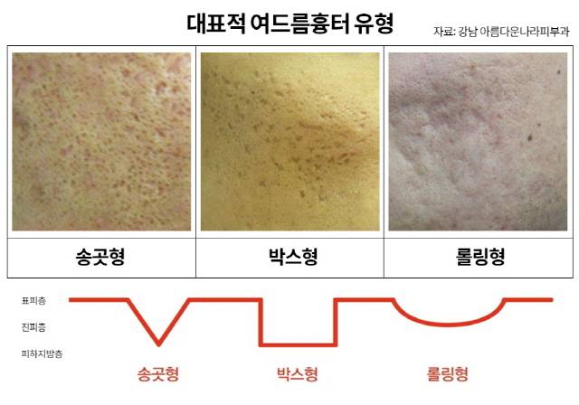 오래된 여드름흉터는 겉으로 보면 표면이 단순하게 패여 보이지만 송곳형, 박스형, 롤링형 등 그 유형이 다양하다. 따라서 흉터에 따라 깊이와 모양이 제각각이며 피부 탄력까지 떨어져 치료가 까다로운 대표적 피부 고민으로 꼽힌다. 환자들은 여러 방법을 시도하거나 반복적으로 치료를 받아도 개선 효과가 크지 않아 아예 포기하는 경우도 적지 않다.