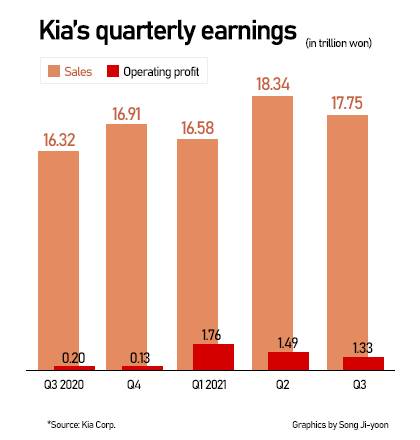 As with Hyundai Motor which reported earnings a day earlier, Kia also saw a profit decline on quarter due to slowed sales from disrupted factory operation amid protracted chip shortage.