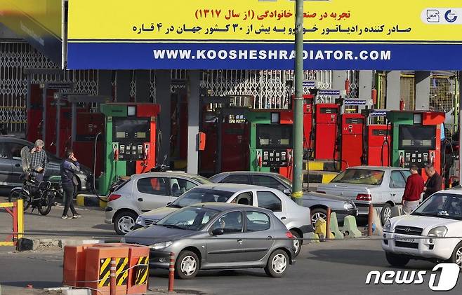 (테헤란 AFP=뉴스1) 노선웅 기자 = 대대적 연료공급 중단을 부른 이란 전역의 주요소 전산망 마비에 이란 정부는 "알 수 없는 사이버 공격 탓"이라고 밝혔다. 사진은 26일(현지시간) 테헤란의 한 주유소에 기름을 넣기 위해 길게 늘어선 행렬.