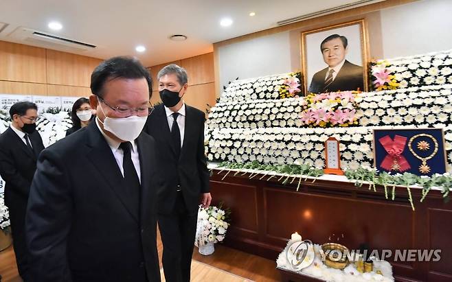 (서울=연합뉴스) 김부겸 국무총리가 27일 서울 종로구 서울대병원 장례식장에 마련된 고(故) 노태우 전 대통령 빈소를 찾아 조문을 마친 뒤 빈소를 나서고 있다. 2021.10.27 [사진공동취재단]