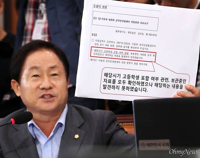 앞서, 지난 2019년 9월 4일 교원단체인 실천교육교사모임은 "주 의원이 조국 딸 본인만 열람할 수 있는 학생부의 민감 정보를 공표한 것은 심각한 범죄 행위"라면서 주 의원을 개인정보보호법과 초중등교육법 위반 혐의로 검찰에 고발한 바 있다. (관련기사 : 교원단체도 분노... 조국 딸 '생기부 공표' 주광덕 의원 고발 http://omn.kr/1krqr)
