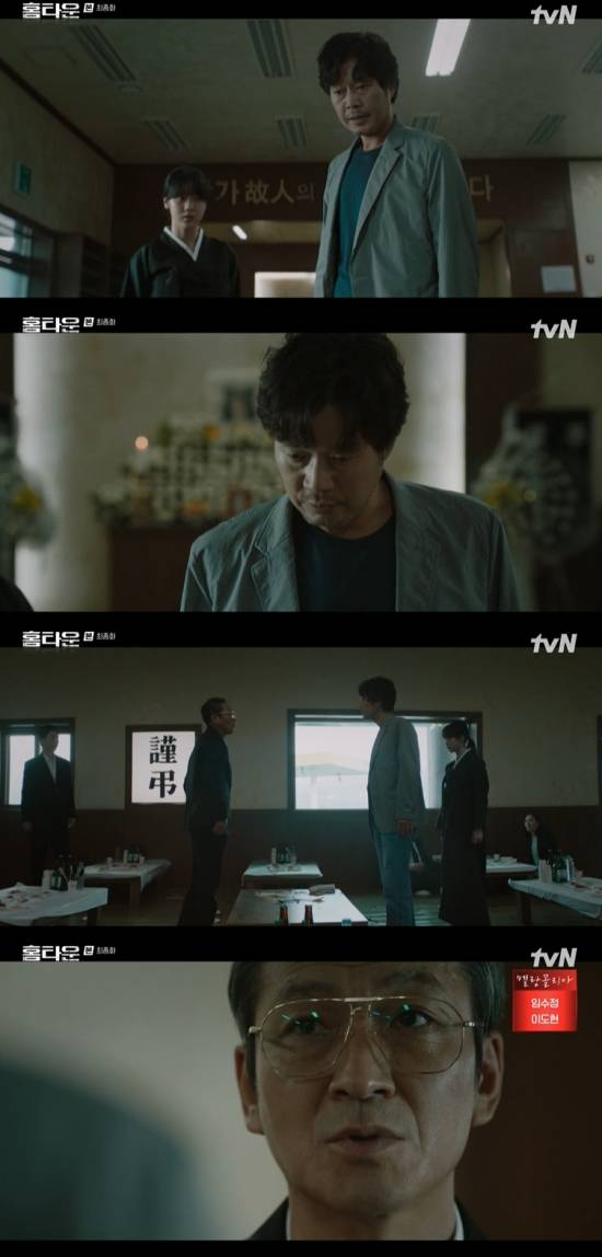 28일 방송된 tvN 수목드라마 '홈타운' 12회(최종회)에서는 임인관(최광일 분)이 최형인(유재명)에게 조정현(한예리)의 죽음을 암시한 모습이 그려졌다.