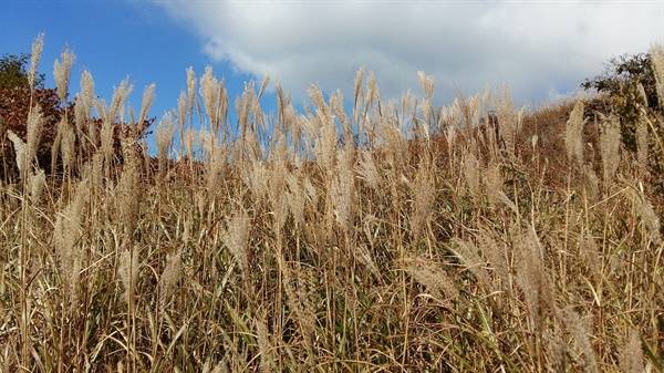 | ▲ 억새는 바라보는 위치와 시간에 따라 색을 달리한다. 해를 등지고 올려다보는 억새는 갈색을 띤다. 태양을 마주 보는 억새는 은빛으로 빛나고 석양의 억새는 황금빛으로 부서진다 |