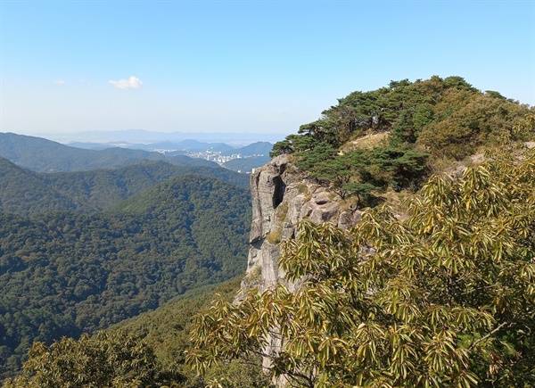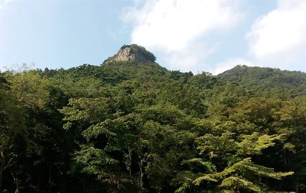 | ▲ 약사사에서 바라본 새인봉. 봉우리가 임금님의 옥새를 닮았다 해서 새인봉 또는 인괘봉이라 부른다 |