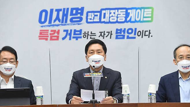 국민의힘 김기현 원내대표는 더불어민주당 윤호중 원내대표에게 대장동 의혹 특검 도입을 논의하기 위한 1대1 공개토론을 제안했습니다.