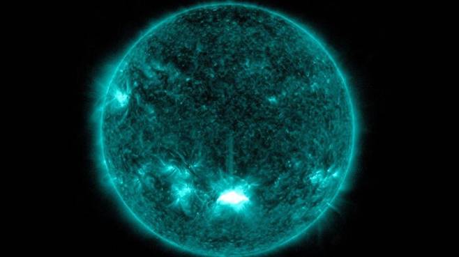 '스페이스웨더닷컴'은 이로 인한 '코로나 질량 방출'로 쏟아져 나온 하전입자가 30일이나 31일쯤 지구에 도착해 오로라를 만들고 위성통신 장애를 일으킬 수 있다고 전망했습니다.