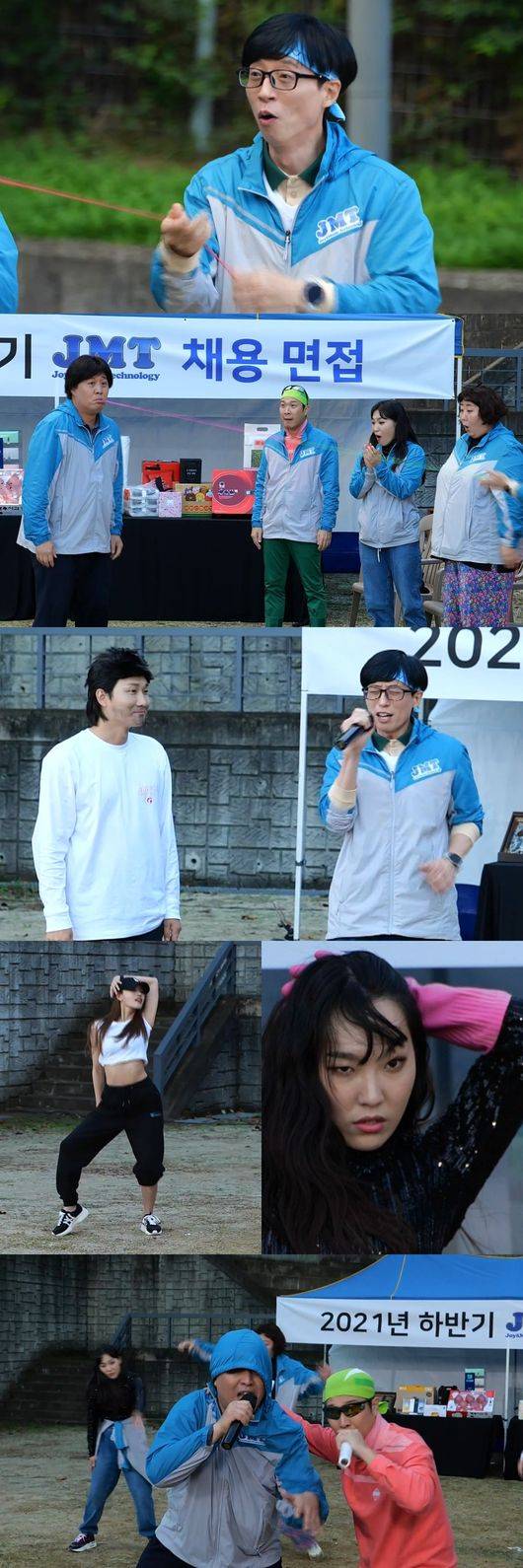 공개된 사진 속에는 JMT 유본부장과 면접생들의 치열한 장기자랑 배틀 현장이 담겨 웃음을 유발한다.