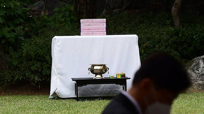 김 여사를 비롯한 유족들은 이내 마당으로 나와 영정이 놓인 제단으로 향했습니다.