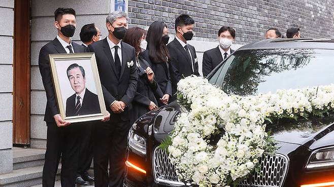 오늘(30일) 오전 9시 정각 고인을 실은 8인승 리무진이 서울대병원 장례식장을 출발했고 오전 9시 18분 고인의 대형 영정사진을 담은 차량과 함께 국화꽃을 두른 운구차가 연희동 자택 골목 어귀에 등장했습니다.