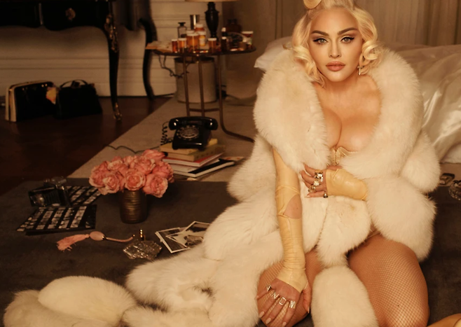 [스포츠서울 | 박효실기자] 팝스타 마돈나(63)가 요절한 은막의 스타 마릴린 먼로의 사망 당시 모습을 재현한 듯한 화보를 공개해 논란이 되고 있다.