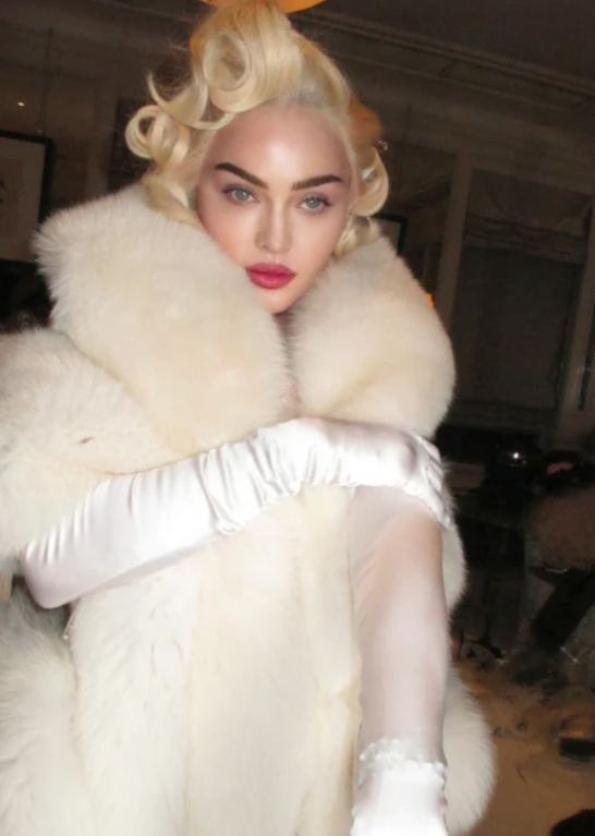 화보 속에서 마돈나는 먼로의 아이콘이라 할 금발세팅 머리에 하얀 모피를 두른 모습이다.