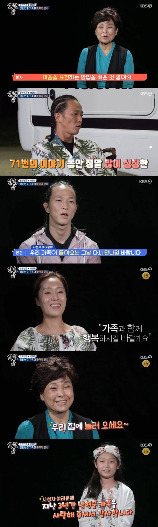 팝핀현준 어머니는 "서로 대화하는 거. 마음을 보여주는 거. '살림남' 촬영을 하면서 배워가지 않았을까"라며 말했고, 팝핀현준은 "저희 가족이 돌아오는 그날 다시 만나길 바란다"라며 당부했다.