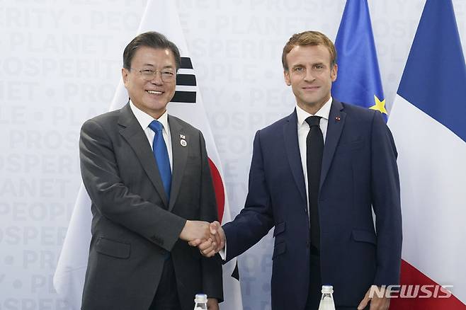기념촬영하는 문재인 대통령과 마크롱 대통령