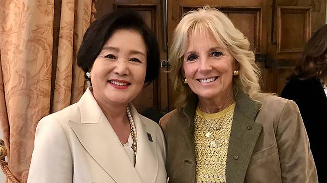 김정숙 여사, 바이든 부인 만나 한반도 평화 지지 당부