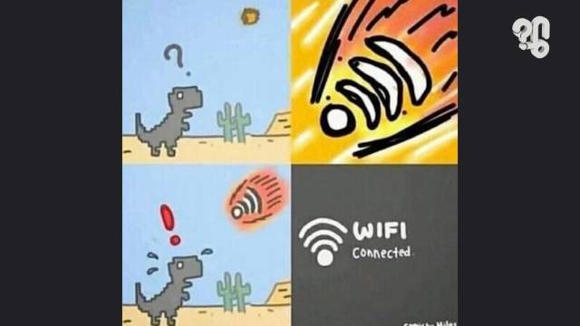 또 이건 구글의 공식 설명은 아니지만 와이파이 모양을 45도 기울이면 떨어지는 운석을 닮았는데 운석이 떨어지면 공룡이 멸종한다는 걸, 운석=와이파이, 와이파이가 생기면 공룡이 사라진다는 걸로 비유했다는 설도 있다. 또 다른 해석으로는 IP주소에 연결할 수 없을 때 뜨는 ‘DNS error’ 발음이 ‘dinosaur(공룡)’의 발음과 비슷하기 때문이라는 주장도 있다.