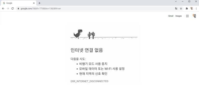 [왱] 인터넷 먹통인 크롬 화면에 공룡이 나오는 이유
