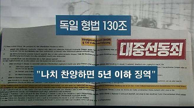 대중선동죄가 말하는 6조 1항은 대량 학살 관련한 제노사이드 조항으로, 대량 학살을 하면 종신형에 처한다고 돼 있습니다. 즉, 나치가 벌인 홀로코스트를 부정하거나 축소하는 행위가 '공공의 평화에 해를 끼치는 경우 처벌한다는 의미입니다.