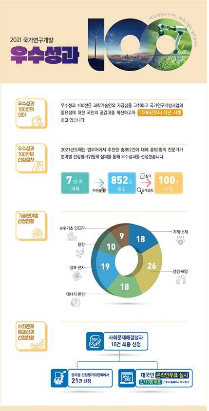과학기술정보통신부는 한국과학기술기획평가원과 함께 31일 '2021년 국가연구개발 우수성과 100선'을 선정해 발표했다.