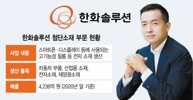 한화솔루션의 첨단 소재 부문은 스마트폰과 디스플레이 등에 사용되는 고기능성 필름 등 전자 소재 사업을 담당한다.