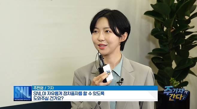 지난 30일 업로드된 SNL코리아 9화에서 주현영 기자 캐릭터가 윤석열 국민의힘 대선 경선후보, 심상정 정의당 대선후보를 연달아 인터뷰했다. 지난 주에는 홍준표 국민의힘 대선 경선후보를 인터뷰했다. 주기자는 긴장한 상황에서 공개 발표를 할 때 보이는 발성 등으로 사회초년생의 모습을 빗댄 캐릭터다.