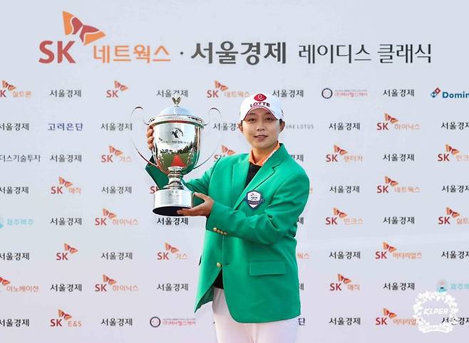 [서울=뉴시스] 31일 제주 서귀포에 위치한 핀크스GC에서 열린 'SK네트웍스-서울경제 레이디스 클래식' FR 우승자 김효주가 우승트로피를 들고 포즈를 취하고 있다. (사진=KLPGA/박준석 제공) 2021.10.31. photo@newsis.com *재판매 및 DB 금지