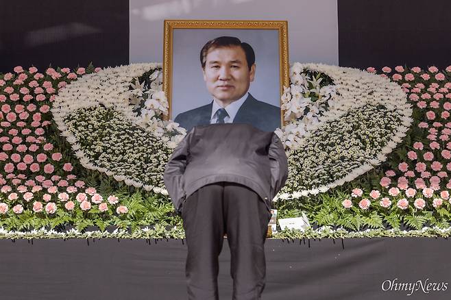 영결식장에서 김부겸 총리는 "고인의 재임 기간 많은 공적이 있음에도 애도만 하지 못하는 것은 우리 공동체가 풀어야 할 숙제가 남아있기 때문"이라며 "과거는 묻히는 것이 아니라 우리 공동체가 만들어 가는 역사로 늘 살아있다"고 말했다.