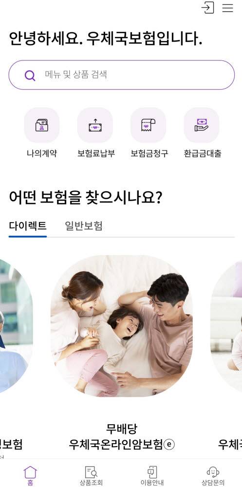 우정사업본부가 1일 우체국보험 앱 사용자화면 등을 개편했다.