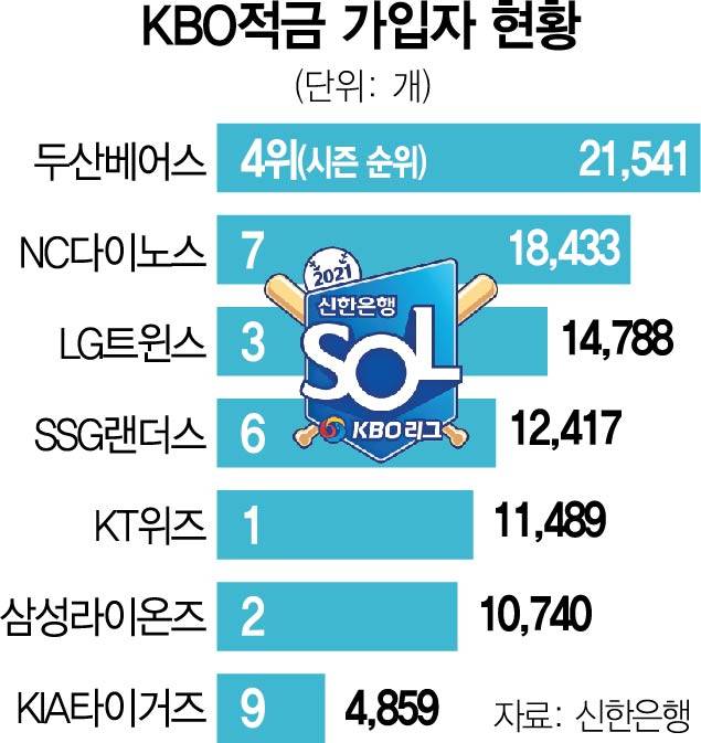 [단독] '신한 KBO 적금' 고객은 두산에 베팅..KT는 5위였네