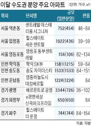 지역별로는 수도권에서만 총 29개 단지, 1만6289가구가 일반분양된다. 경기도가 8553가구로 물량이 가장 많다. 지방에서는 2만8658가구가 일반분양된다.