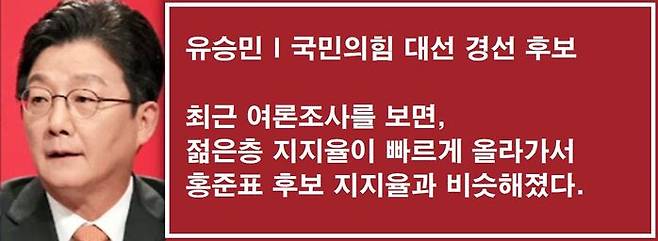유승민 후보는 "젊은 세대 지지율이 급상승해, 홍준표 후보와 비슷해졌다"고 말했습니다.
