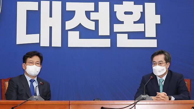 더불어민주당 이재명 대선 후보가 여권 대통합 방침을 밝힌 가운데, 상임선대위원장인 송영길 대표가 제3지대에서 차기 대선 출마를 선언한 김동연 전 경제부총리에게 '러브콜'을 보냈습니다.