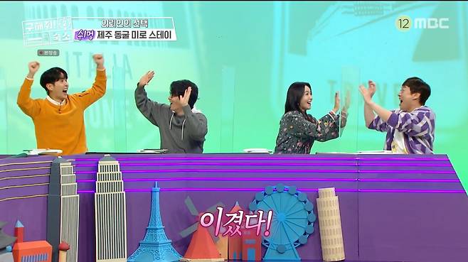 의뢰인이 '동굴 미로 스테이'를 선택하며 쉬멍팀이 10점을 획득해 압승을 거뒀다. 이에 박지윤은 의뢰인들에게 "제주 오시면 연락 주세요. 흑돼지 쏘겠다"고 약속하는 훈훈한 모습을 보였다.