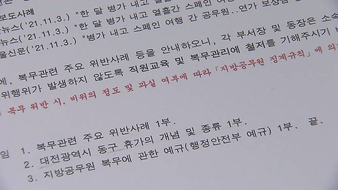 다만 대전 동구는 전 직원을 대상으로 복무교육을 진행하고, 동구 감사실과 합동으로 부서별 복무점검을 하겠다고 밝혔습니다.