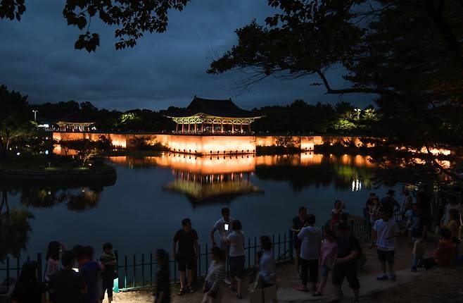 | ▲ 경주 동궁과 월지의 밤 풍경을 즐기는 여행자들. |