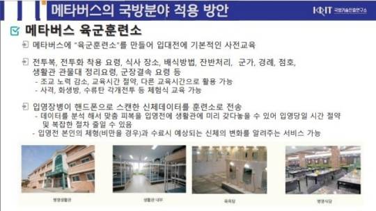입대 전 장병들의 경우 메타버스에 마련된 일종의 '가상 육군훈련소'에서 전투복, 전투화 착용 요령, 생활관 관물대 정리 요령 등은 물론 사격이나 화생방, 수류탄 각개전투 등 체험식 교육도 가능하다.