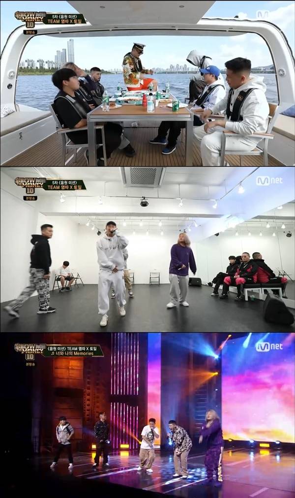 5일 방송된 Mnet 힙합 서바이벌 '쇼미더머니 10'(이하 '쇼미10')에서는 염따-토일 팀 '토나와염'의 5차 음원미션 무대가 공개됐다.