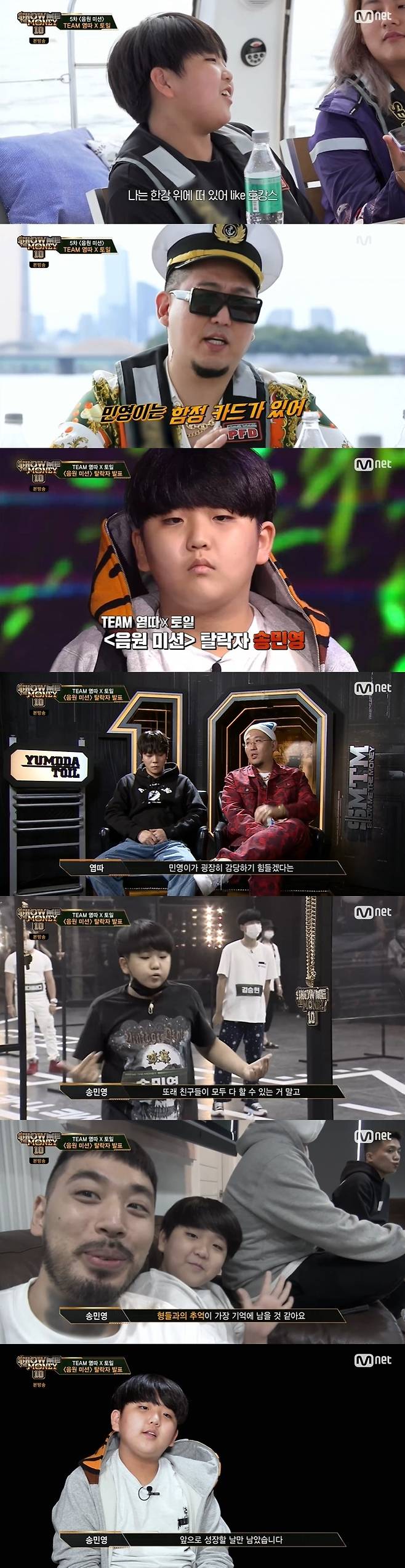 염따는 “그 친구 랩이 기술적으로 부족한 점이 있지만 왠지 모를 행복을 느꼈다”라면서도 “앞으로 미션들을 봤을 때 민영이가 감당하기 힘들겠다는 생각이 들었다”라고 탈락 선정 이유를 밝혔다.