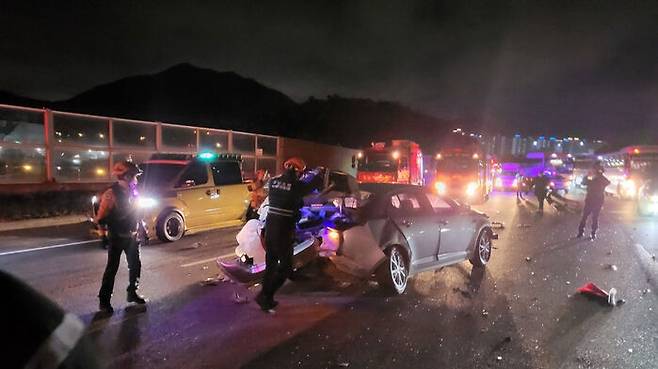 경남 남해고속도로서 승용차-SUV 2차 사고..3명 부상