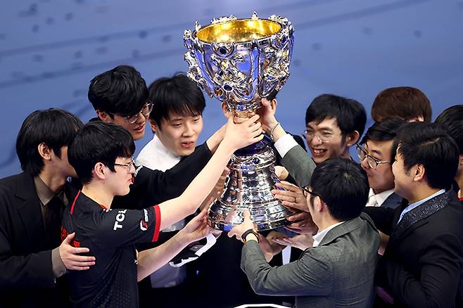 7일 아이슬란드 레이캬비크 뢰이가르달스회들 실내 경기장에서 끝난 '2021 리그 오브 레전드 월드 챔피언십' 결승전에서 중국지역 LPL 에드워드 게이밍(EDG)가 한국지역 LCK 담원 기아를 세트 스코어 3대 2로 격파하고 우승을 차지했다.