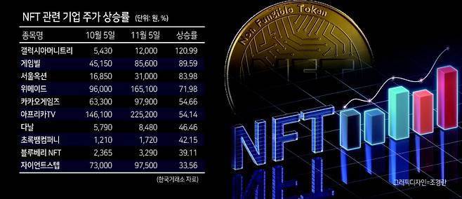 NFT로 향하는 상장사들..주가도 '펄펄'