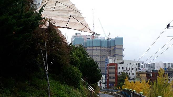 낮 2시 34분에는 동래구 명륜동 한 식당 천막을 지지하던 와이어가 끊어져 안전조치를 했습니다.