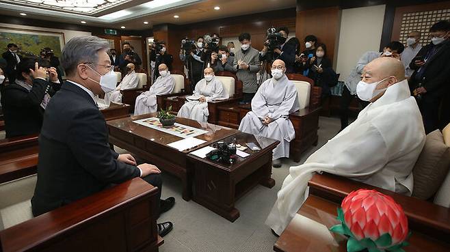 원행 총무원장은 "특별히 신경을 쓰셔서 이번에는 대선공약에 정식으로 채택해달라"고 밝혔습니다.