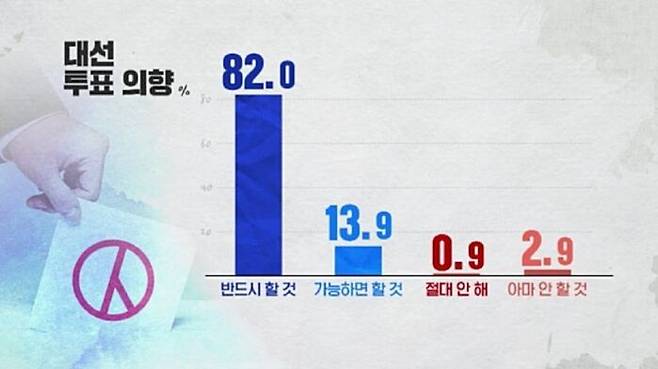 대선의 승부와 직결될 투표율, 투표할지 안 할지 의향을 물었습니다.