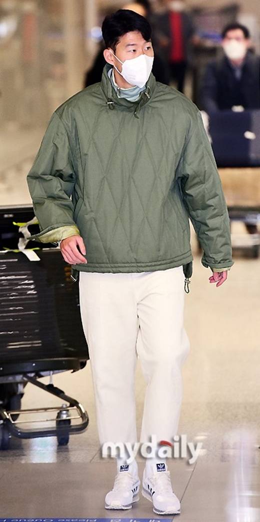 [마이데일리 = 김건호 기자]영국프리미어 리그(EPL) 토트넘 손흥민(29)이 월드컵 최종 예선전을 치르기 위해 귀국했다. 입국장을 나선 손흥민은 유럽 명품 브랜드인 J사의 풀오버 패딩으로 멋을 내며 공항에 나온 여성 팬들의 마음을 흔들었다.