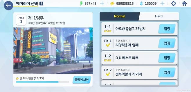 '스케쥴'은 특정 장소에서 학생들과 함께 수업을 듣는 콘텐츠로, 캐릭터의 호감도를 높이고 캐릭터 성장 아이템을 획득할 수 있다. 수업을 들으면 장소의 레벨이 높아지고 다른 장소도 이용할 수 있다.