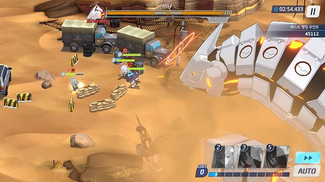 '특별 의뢰'는 캐릭터 경험치 아이템을 획득할 수 있는 '거점 방어', 인게임 재화 '크레딧'을 많이 획득 가능한 '물건 회수'로 구성됐다. '거점 방어'에서는 방어력이 높은 적들이 등장하기 때문에 스테이지별 파훼법이 중요하며, '물건 회수' 콘텐츠는 제한 시간 내 적을 모두 처치해야 하기 때문에 빠르게 피해를 많이 넣을 수 있는 부대 편성이 필요하다.